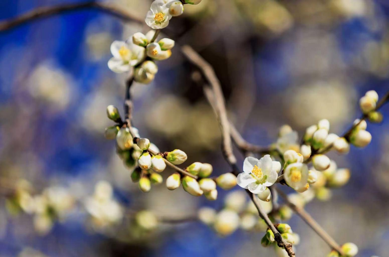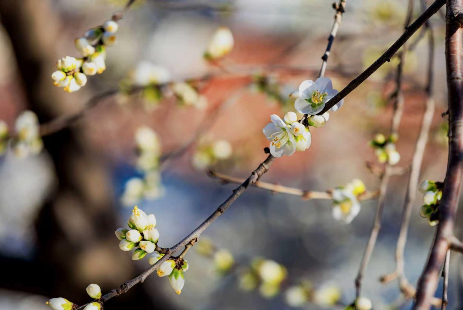 3月9日,北京朝阳区十里堡二道沟河畔,山桃花初绽放,一簇簇的花骨朵当中,数枝桃花抢先盛开,迎接明媚春天。 到3月中下旬,...