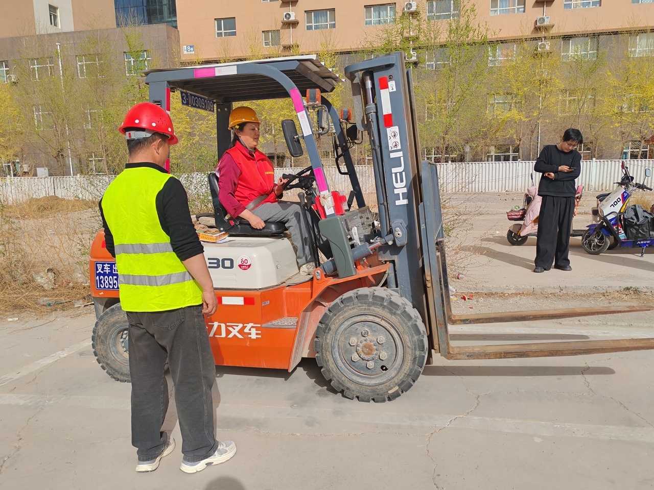 实训期间,大团结社区联合工会还结合职工训练情况,同步安排训练赛。4月8日,首场叉车实操技能大赛在兴庆万达东侧专用训练场开赛。赛事项目紧贴仓储物流、生产作业等一线岗位实际,设置精准叉取、平稳运输、倒车入库等内容,旨在实现以赛促练、以练提能。