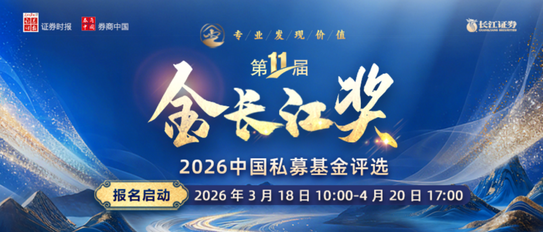 私募界一年一度的重磅盛事——由证券时报社主办、长江证券协办的第十一届中国私募基金“金长江”奖评选已于2026年3月18日正式启动,网上报名将持续至2026年4月20日17:00。聚十年星光,鉴私募力量,本届评选诚邀广大私募机构共赴这场行业盛会,共同见证新十年的启航。